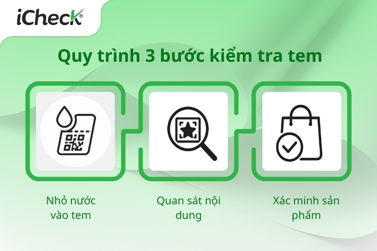 Tem chống giả công nghệ nước giúp người tiêu dùng dễ dàng xác thực sản phẩm chỉ với vài thao tác đơn giản. Dưới đây là hướng dẫn chi tiết để kiểm tra tem một cách chính xác: